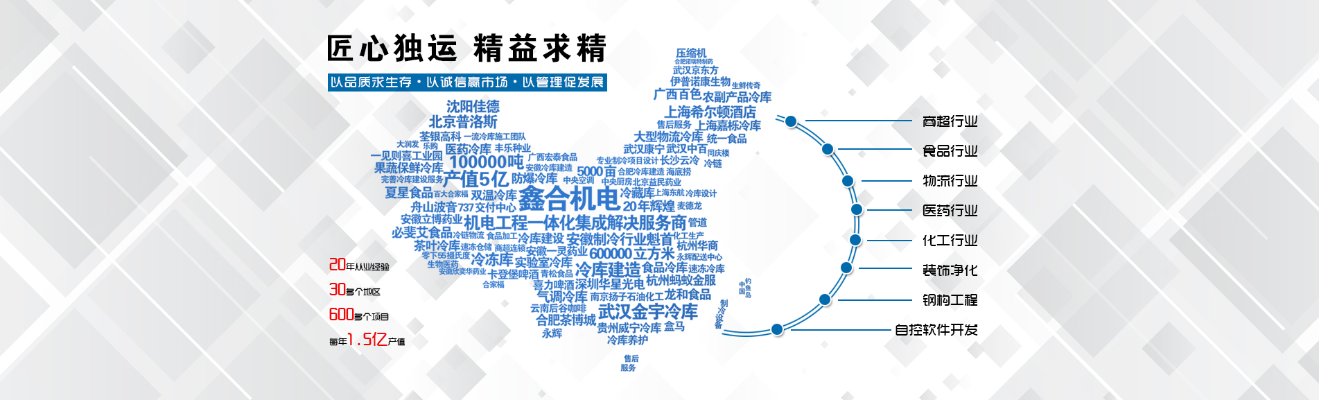 安徽鑫合機電設(shè)備有限公司于2002年組建運營,專業(yè)從事冷凍、冷藏庫、中央空調(diào)、醫(yī)藥凈化工程的規(guī)劃設(shè)計、施工承建、售后服務為一體的綜合性工程公司,與100多家實力雄厚的大中型企業(yè)建立長期產(chǎn)略合作關(guān)系,其中有多家世界500強和上市企業(yè)。公司作為中國倉儲與配送協(xié)會會員單位、安徽省制冷學會理事單位、上海楊浦區(qū)制冷協(xié)會工程總承包負責單位,引領(lǐng)于行業(yè)前沿。我們將銘記給予我們大力支持的各界新老朋友及合作伙伴,我們將會保持“互惠互利、共同發(fā)展”的原則與您共創(chuàng)雙嬴的合作關(guān)系。